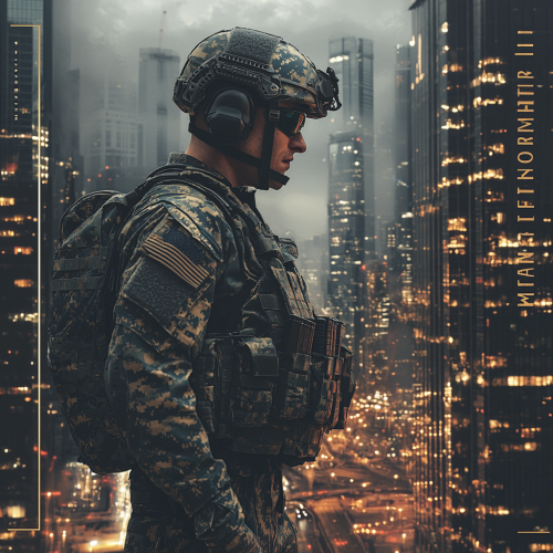 create a 3D mockup of a hardcover book titled 'Mastering the Markets: A Comprehensive Guide to Stocks, Dividends, Futures, and Options Trading.' The cover features a striking design where the left side shows a soldier in OCP camouflage, transitioning smoothly into a business professional in a sharp, tailored suit on the right side, representing a stock trader. The soldier’s expression is focused and determined, while the stock trader appears confident and successful. The background subtly incorporates elements like stock market charts, candlestick patterns, and financial data, blending military greens and browns with sleek, professional blues and grays. The title is prominently displayed at the top in a bold, modern font, with the subtitle in a slightly smaller yet still readable font underneath. The mockup should include views from the front, spine, and a slightly tilted perspective to showcase the depth and 3D effect of the book --q 2 --s 750