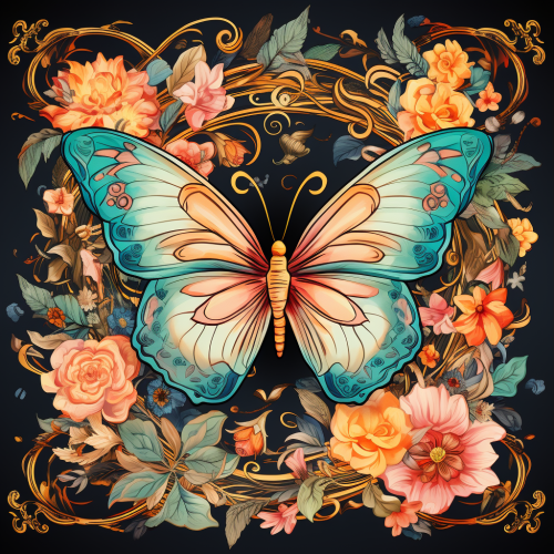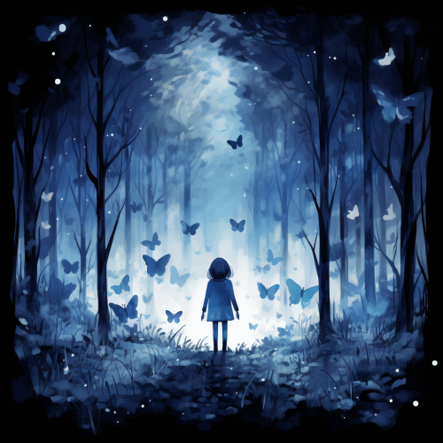 dark blue forest butterfly forest child like drawing paint water color