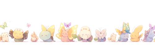 very cute kawaii buterflies playing with a white background --niji --ar 3:1