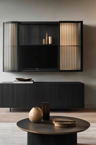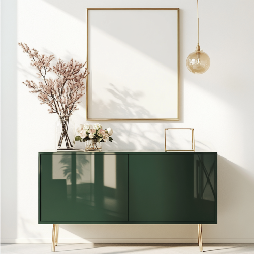 Product photography of a wooden cabinet with white, diamond-shaped patterned doors, each featuring a golden button in the center. Captured from the front view with hyper-realistic detail and high resolution, the cabinet is displayed in a modern showroom or studio setting. The scene emphasizes elegance and luxury, with soft, diffused lighting from multiple angles to highlight the textures of the wood and shimmering accents on the buttons. Taken in 2024 with a Nikon Z9 and a 50mm lens, using Fujifilm Pro 400H film stock for smooth tones and soft contrasts. Warm wood tones complement the subtle white patterns and golden highlights, creating an inviting and refined aesthetic --ar 4:5 --style raw --v 6.1
