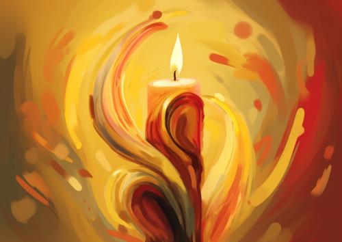 Abstract banana as a Christmas candle with flame on top, warm glow, blending holiday warmth with fruit theme, card for growers --ar 7:5 --chaos 0 --stylize 350 --v 5.0