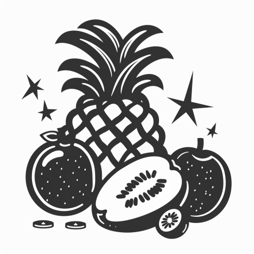 claim rich in fruit, flat icon, vector illustration, simple design, black and white