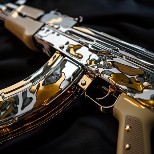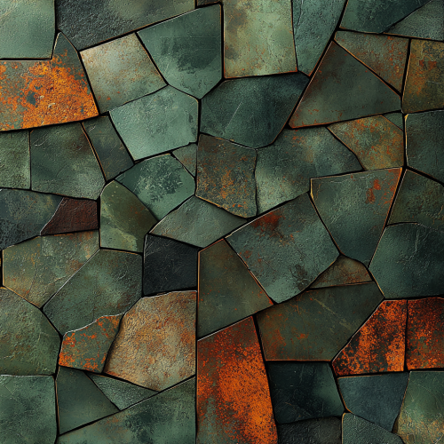Create a sleek and modern camouflage pattern with a premium metallic finish. Blend deep olive greens, muted browns, and soft earth tones with geometric shapes and sharp lines, reflecting a contemporary urban style. The metallic sheen should enhance the ruggedness of the design, perfect for an upscale, masculine aesthetic, yet elegant enough for versatile appeal. Intricate layering of colors and textures gives it a luxury feel, with seamless transitions throughout. --q 2 --s 250