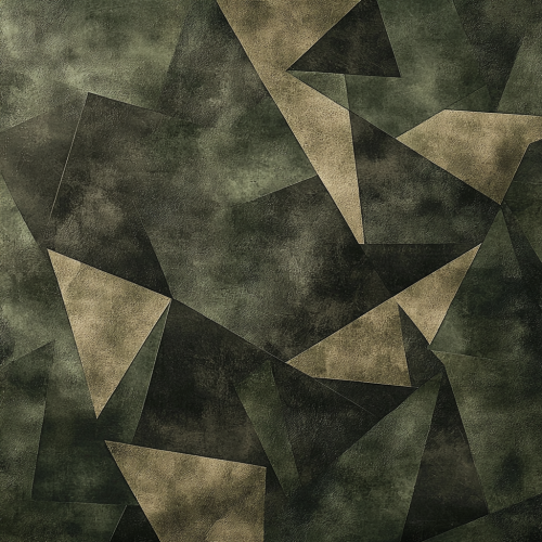 Create a sleek and modern camouflage pattern with a premium metallic finish. Blend deep olive greens, muted browns, and soft earth tones with geometric shapes and sharp lines, reflecting a contemporary urban style. The metallic sheen should enhance the ruggedness of the design, perfect for an upscale, masculine aesthetic, yet elegant enough for versatile appeal. Intricate layering of colors and textures gives it a luxury feel, with seamless transitions throughout. --q 2 --s 800
