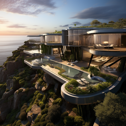 a contemporsry mega mansion sitting on the cliff located in Cape Town South Africa, photorealistic, ultra high definition