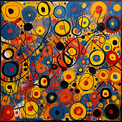 Degital patterned art composed of large amounts of primary colors in a style that combines Georges Rouault and Jackson Pollock, Giotto di Bondone