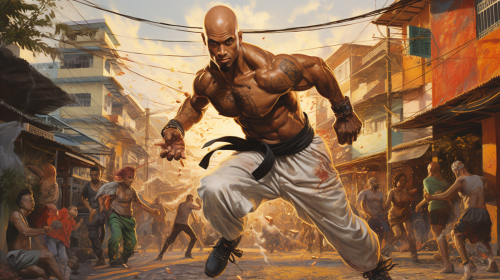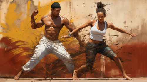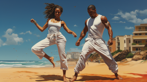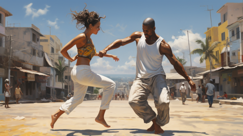 two people capoiera, capoeira sport, bahia city, ultra realistic --ar 16:9