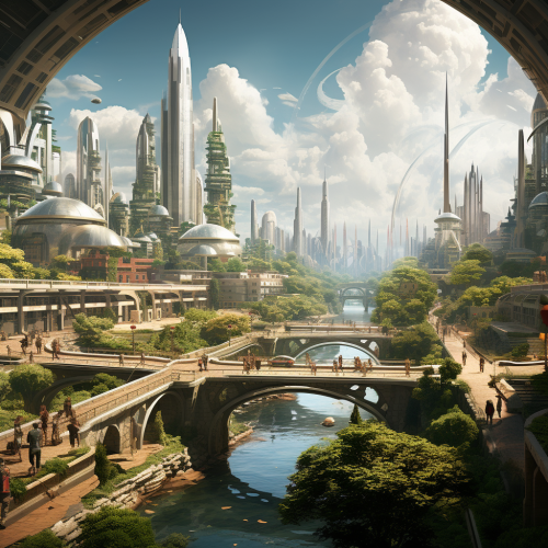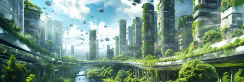 Green city of the future. City of the future. Harmony of city and nature and AI. Sunny day in the big city. --ar 3:1 --v 5.1 --style raw
