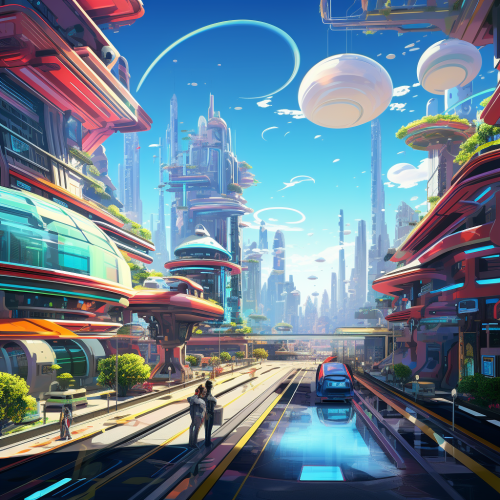 a futuristic city in the style of syd mead, landscape, vibrant colors, style scenic ar 7:4