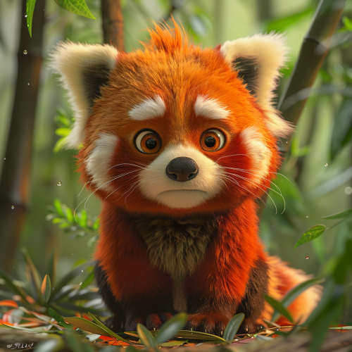 create an image of a baby red panda in a rain forest setting pixar style animation --v 6.0 --s 250