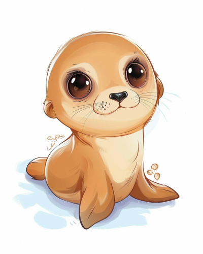 cute baby cartoon seal cub for a poster on a baby's bedroom wall. white background. adorable. --v 6.0 --ar 4:5