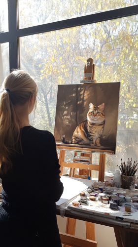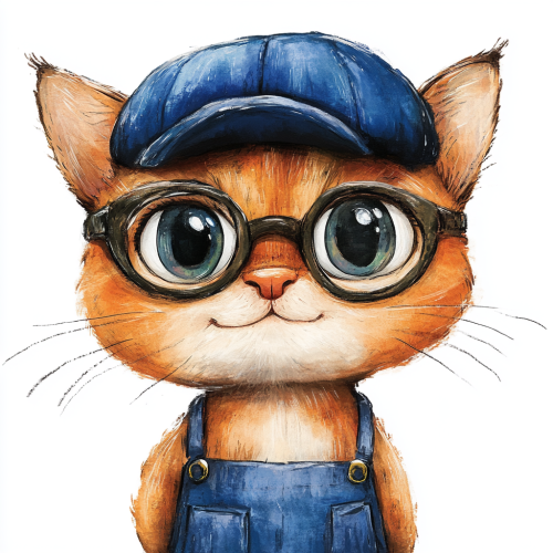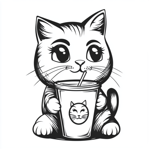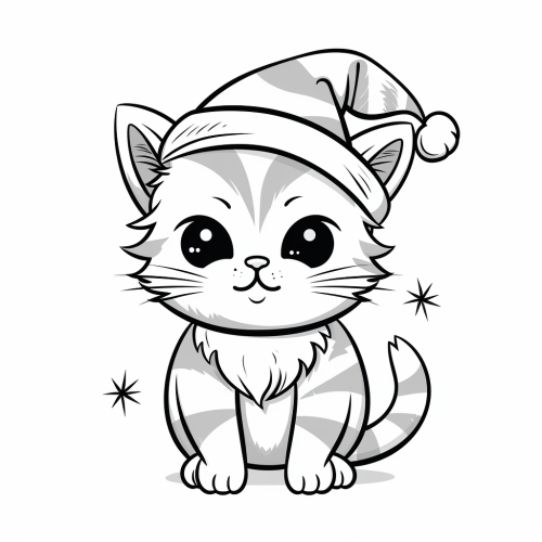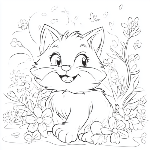 coloring page for kids, a cute cat ,cartoon style, thick lines, low detail,no shading ,Dreamlike, Art style in the manner of a disney film , bright image.