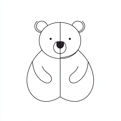 A minimalbear made from simple geometric shapes, outlined with no fill. The body is an oval or rectangle, the head is a circle, with small circular ears. The eyes are tiny dots,. The entire design is clean and outlined with no colors or shading.