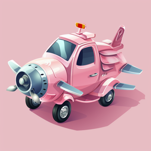Cartoon car designed with a cute, funny pig shape, light pink, wings, chrome exhaust pipe, isometric style 2d. Cartoon car designed with lovely pig shape, light pink color, wings, chrome exhaust pipe, isometric style 2d