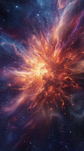 An explosive spectacle unfolds as a star erupts in a cataclysmic burst of energy. The once-distant celestial body transforms into a dazzling firework of light and color, illuminating the cosmos with its brilliance. Witness the awe-inspiring power of nature as a star's fiery demise creates a cosmic masterpiece that defies imagination, cinematic contour lighting, low contrast ProLog, awardwinning composition, chromatic aberration --ar 9:16 --style raw --v 6.0