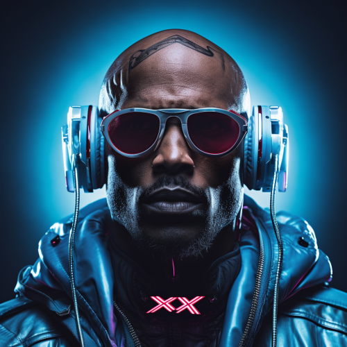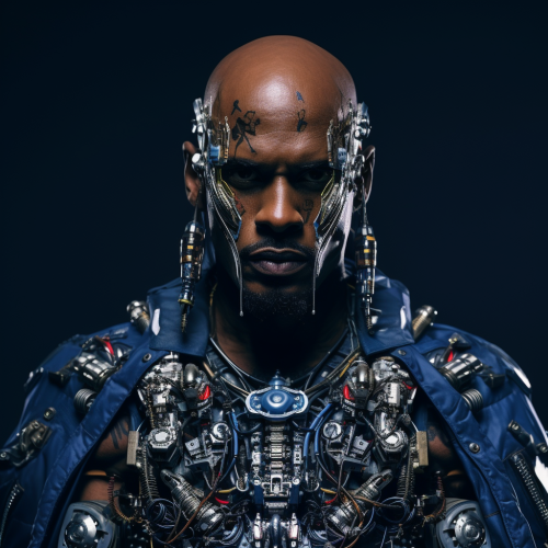 rapper DMX merged with Ai robotics, sci fi futuristic --v 5.2
