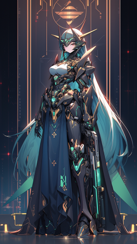 [[4805199643376881665]] full body,front view,full body,front view,A futuristic young qipao robot girl,blue golden green glass ,mecha armed, ,Cyberpunk,pose_transition, Chinese short qipao clothes with high-tech, background by neon lights adorning holographic billboards in the city, Future Machinery, visually inventivesci-fi inspired futurism, Ghost in the Shell style --niji 5 --ar 9:16 --iw 1.2 --s 750