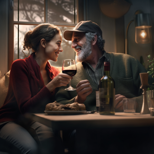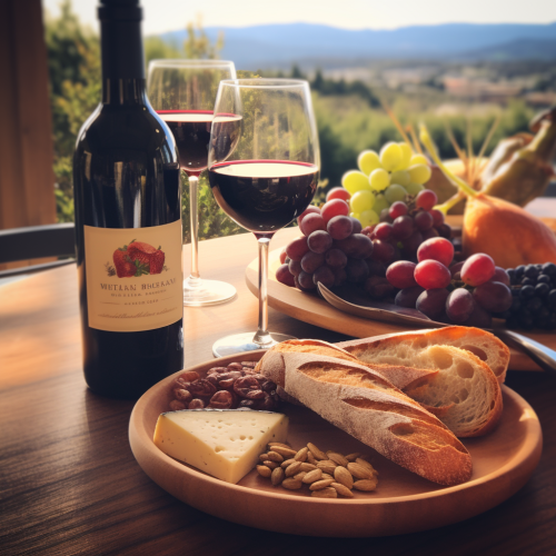 Cabernet Sauvignon on a crisp evening with a fruit basket and bread