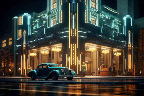 Art deco, city streets night, retro-futurism, 8k, Unleas – sharpness, depth – of – field, ultra– detailed photography, raytraced, global illumination --ar 3:2