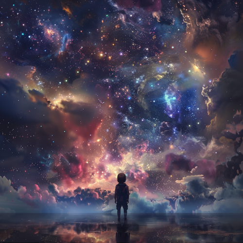 universe in the sky as a child looks up, high detail, realistics, cinematic colors, 32k, super-resolution, looking up ar 16:9