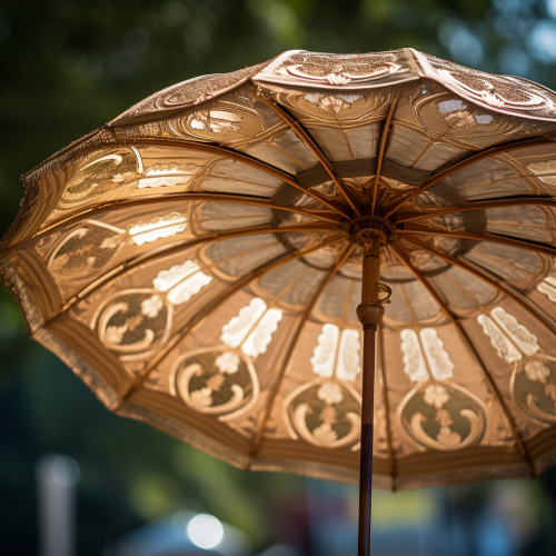 1900's parasol, walk in the park, exquisite detail, 30-megapixel, 4k, 85-mm-lens, sharp-focus, intricately-detailed, long exposure time, f/8, ISO 100, shutter-speed 1/125, diffuse-back-lighting, award-winning photograph, facing-camera, looking-into-camera, monovisions, elle, small-catchlight, low-contrast, High-sharpness, facial-symmetry, depth-of-field, golden-hour, ultra-detailed photography