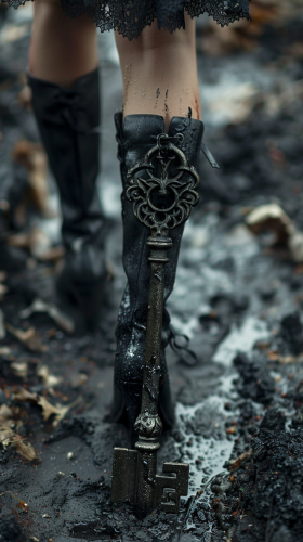 The key was a blackened talisman, tucked into her leather cuff. She'd gotten in the habit of keeping it there since it had become the only tangible thing she owned when, three months ago, her entire life was reduced to ash and ruin. The fire department had already come and gone by the time she arrived, her boots crunching on caramelized glass and stepping over hissing metal. Everything was wet and charred- mannequins with their faces melted in, the once larger-than-life Mylar tree shriveled to a rootwhich meant that whoever had left the key had watched and waited, like a tiger stalking its prey. But Morgan knew better. Only humans tortured their food before eating it. --ar 9:16 --s 250 --v 6.0