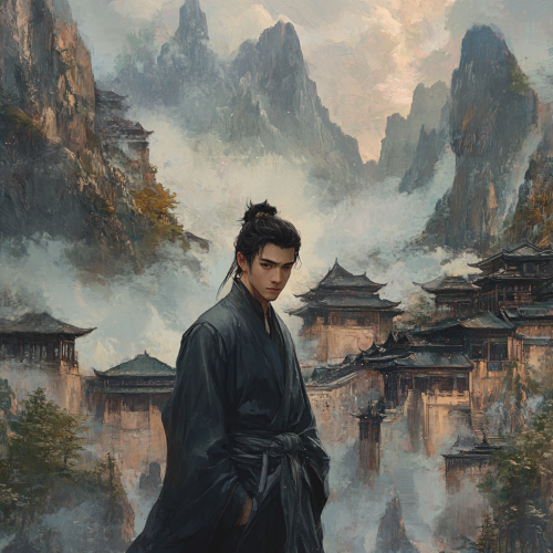 Please give me a cover picture of the novel, about Xiuxian, fantasy, Chinese character male, 20 years old, front man standing, strong Oriental art style, combining realism and fantasy elements, the man in the painting, huge mountains and ancient Oriental buildings, through delicate brushstrokes, rich colors and clever composition, to create a mysterious, lonely and supernatural atmosphere.