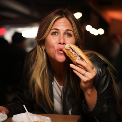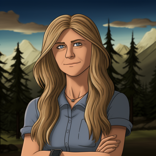 a publicity shot of Jennifer Aniston in the cartoon style of Alex hits h and Gravity Falls