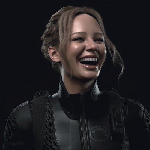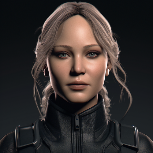 Create a detailed 3D Blender model of Jennifer Lawrence wearing all-black special agent gear. Zoom in on her face as a close-up to where you can see the pores. The background is black, The image should be rendered in high quality. Hyperrealistic. --v 5.0
