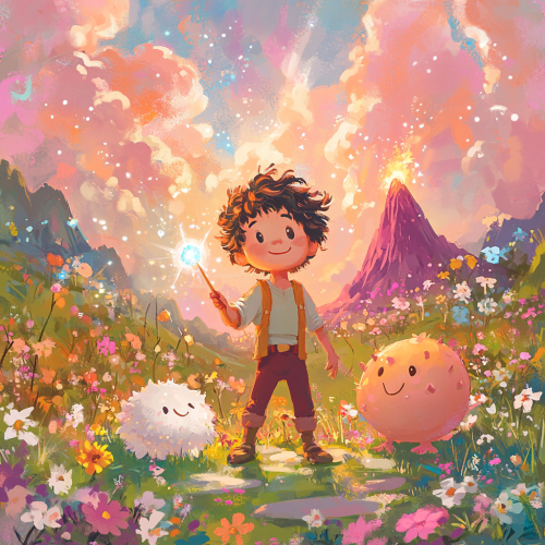 Chien réaliste avec des pouvoirs de charme, son pelage est d'un violet doux avec des motifs scintillants dorés. Ses yeux brillent d’une lueur chaleureuse et envoûtante, et des éclats de lumière magique flottent autour de ses pattes et de sa queue. Le fond est un paysage féerique avec des lumières douces et des étoiles scintillantes. 8K, highly detailed, --ar 9:16