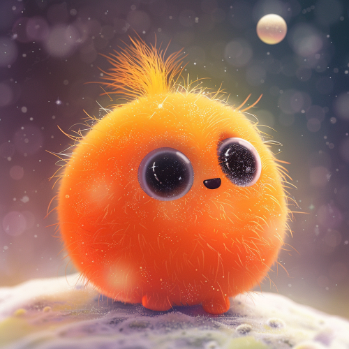 a super cute orange creature with endearing personality with love healing the universe