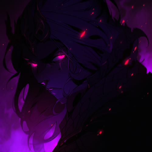 kubrick stare, dragonborn, red eyes, purple scales, dark atmosphere --ar 1:1 --niji 5