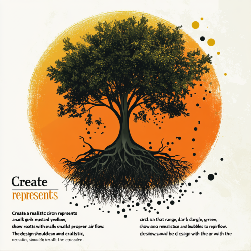 "Create a realistic circle icon that represents aeration boosters, using orange, dark green, and mustard yellow. Inside the circle, show realistic roots with small air bubbles to represent proper airflow. The design should be clean and realistic, with the branding colors integrated." --s 250