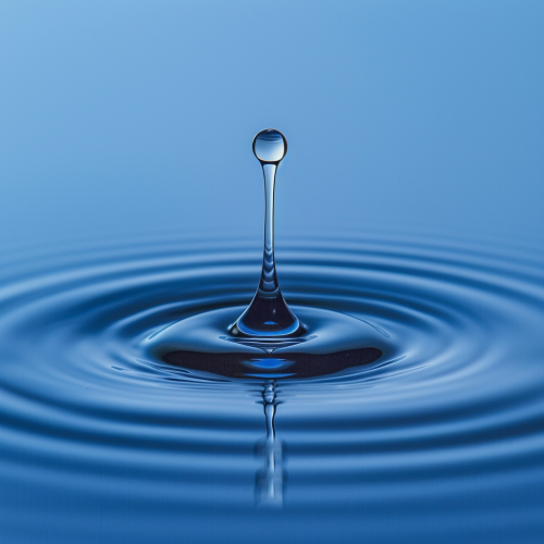 A high-definition close-up of a single water droplet creating ripples on a blue surface. The droplet is perfectly round with intricate details, and the ripples are gently expanding outward. The background is a solid blue with a gradient effect, focusing attention on the water droplet and ripples. Lighting enhances the droplet’s clarity and ripple effects. Created Using: Detailed close-up, water ripple effect, smooth gradient background, natural light, hd quality --v 6.0