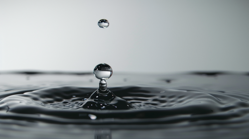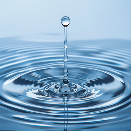 A high-definition close-up of a water droplet creating ripples on a light blue surface. The droplet is detailed and clear, with ripples expanding outward in a graceful pattern. The background is a smooth, soft light blue, which enhances the visual appeal of the droplet and ripples. Soft lighting highlights the droplet and ripple details. Created Using: Detailed close-up, water ripple effect, soft light blue background, natural light, hd quality --v 6.0