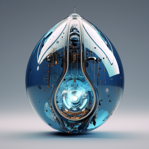 a device housing an AI soul. Shaped like a robotic water droplet containing the very essence of all that makes up this magical divine being living inside it.