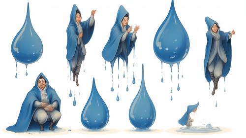 A high-definition image of a single, large water droplet on a vivid blue background. The water droplet is crystal clear with a few tiny reflections, creating a sense of depth and realism. The background is a smooth gradient of blue, enhancing the droplet's visibility. Natural light illuminates the droplet, highlighting its contours and creating a subtle shadow on the background. Created Using: Photorealistic, high detail, smooth texture, natural lighting, hd quality --v 6.0