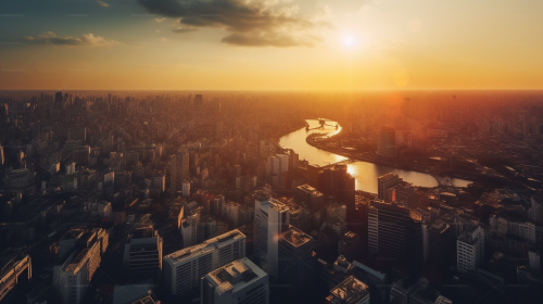 panorama of a big city with a big shiny sunset --v 5.0 --ar 16:9