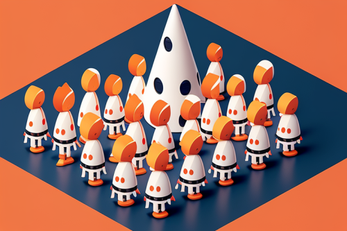 an isometric illustration of a group of children wearing costumes that look like bowling pins. They are standing in a triangular formation. Their faces are horrified--v 6.0 --ar 3:2 --chaos 10 --s 300 --v 4