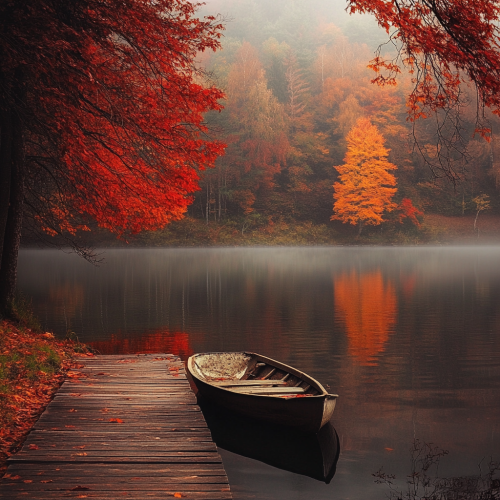 A tranquil Japanese temple in autumn with vivid red, orange, and yellow maple leaves surrounding the structure. The scene is seen from within a traditional wooden room with large open windows, reflecting the autumn colors on the polished floor, in the style of Makoto Shinkai. The lighting is warm and radiant, capturing the peaceful yet vibrant essence of autumn. Highly detailed, soft shading, realistic yet anime-inspired. --ar 9:16 --v 6.1