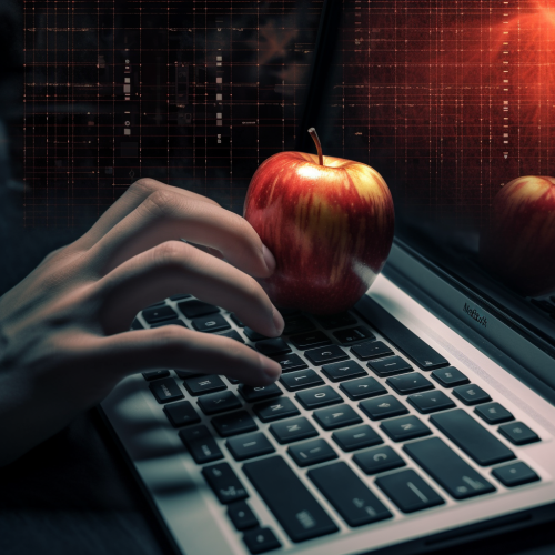generate photo with apple loptop coding noly hands and computer back and keybord