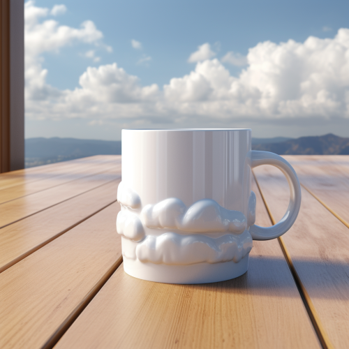 A cloud shaped like a soda can, floating in a clear blue sky. The cloud has the cylindrical form of a can, with soft, fluffy edges but maintaining the distinct shape of the can,