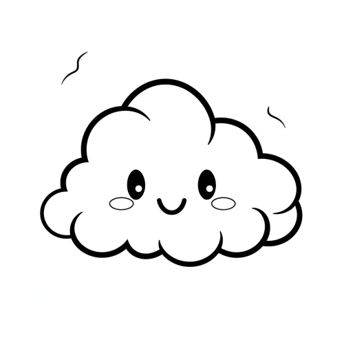 extremely simple. cartoon style. cute cloud.extremely simple. single line art. toddler coloring book. black and white. --s 50