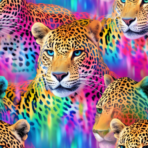 Iridescent Leopard, seamless cheetah skin pattern background rainbow animal skin pattern --tile --no shining flower font text people shadow --style raw --stylize 50