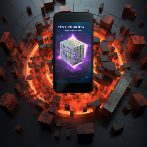 An image of a smartphone at the center of a circular, neon-lit, futuristic interface. The phone is centered with the screen showing, the phone is illuminated with a blue glow from its screen, and a bright light emanates from its center. Surrounding it are concentric rings, with neon pink, purple, and blue accents, creating a vortex-like effect. Small, intricate digital symbols and lines are interspersed within the circles, giving the image a high-tech, cyberpunk feel with pink and purple. The overall aesthetic is dynamic and immersive, suggesting themes of technology, connectivity, and the digital realm. --ar 16:9 --v 6.1