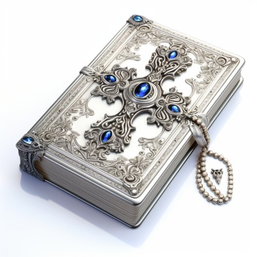 holy book with silver decorations and with "greek cross" in the center, style=hand drawing, white background