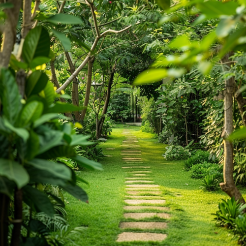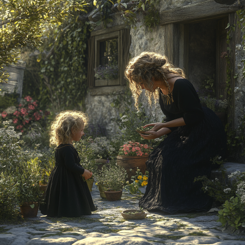 A gardener watering plants in a vibrant garden, with morning sunlight filtering through, creating a peaceful and nurturing scene. Taken with an iphone 15 pro