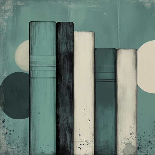 Design for a book spine with in muted turquoise and gray tones, accented with soft cream, muted lime green and black. Include a heavy water droplet pattern effect throughout. Use a minimalist, somber aesthetic with a gentle gradient.