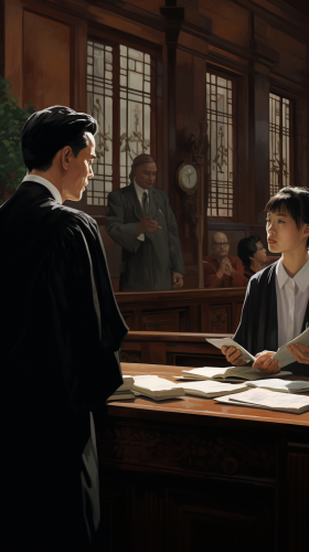 [3a11afbe2] A college student interning at a Chinese court converses with a judge. --v 5.2 --ar 9:16 --c 0