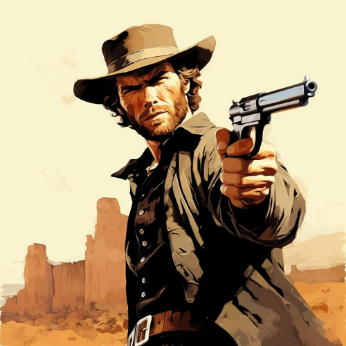 cool stylized Clint Eastwood western, comic book style with gun pointing.